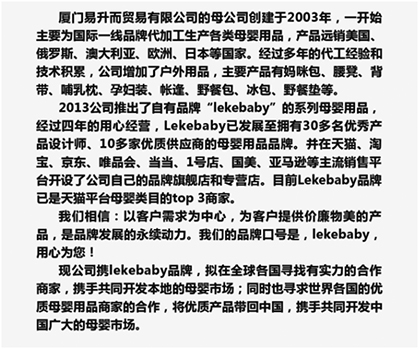 品商家的合作,将优质产品带回中国,携手共同开发中国广大的母婴市场。