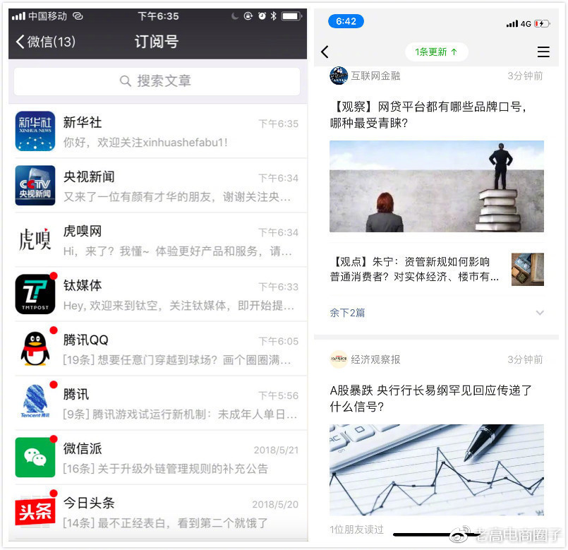 6、微信公众号改版:官方回应称与推荐类信息流不同,只是优化内容展