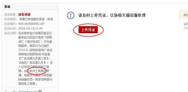 1、首先骗子是利用你对天猫处理此类问题的态度不了解的心理,各种把问题描述的非常严重,而你又有可能恰好最近关注了广告法的法条,另外最近315消费者保护日要到了,进而更加提心吊胆,生怕出点什么问题。那么我们遇到这种问题,首先就是不要慌张,收到投诉第一件事,就是及时联系400电话,咨询这种投诉的应对方法,这个在客服那边都会得到解答,大商家一般都有专职小二客服给予服务,直接联系对应小二,获取后续解决方案。