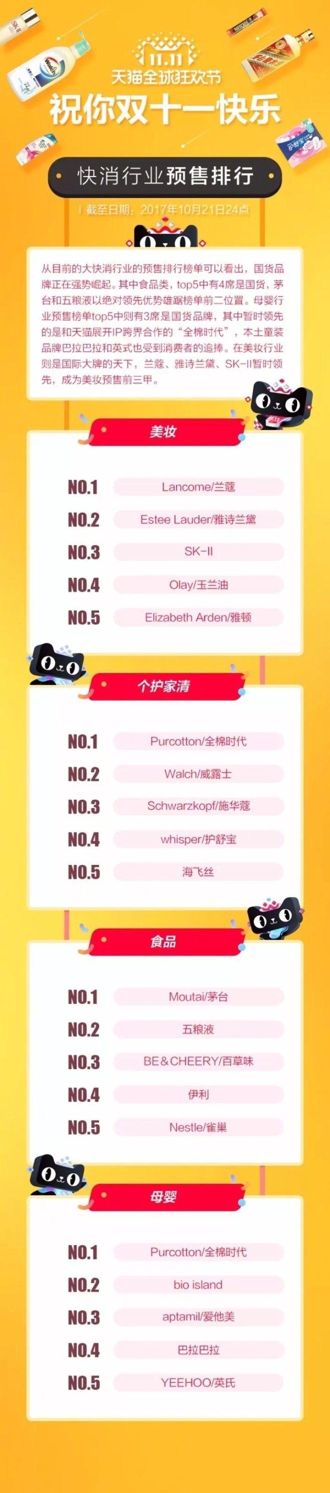 5、2017天猫双11预售榜:茅台、五粮液表现喜人