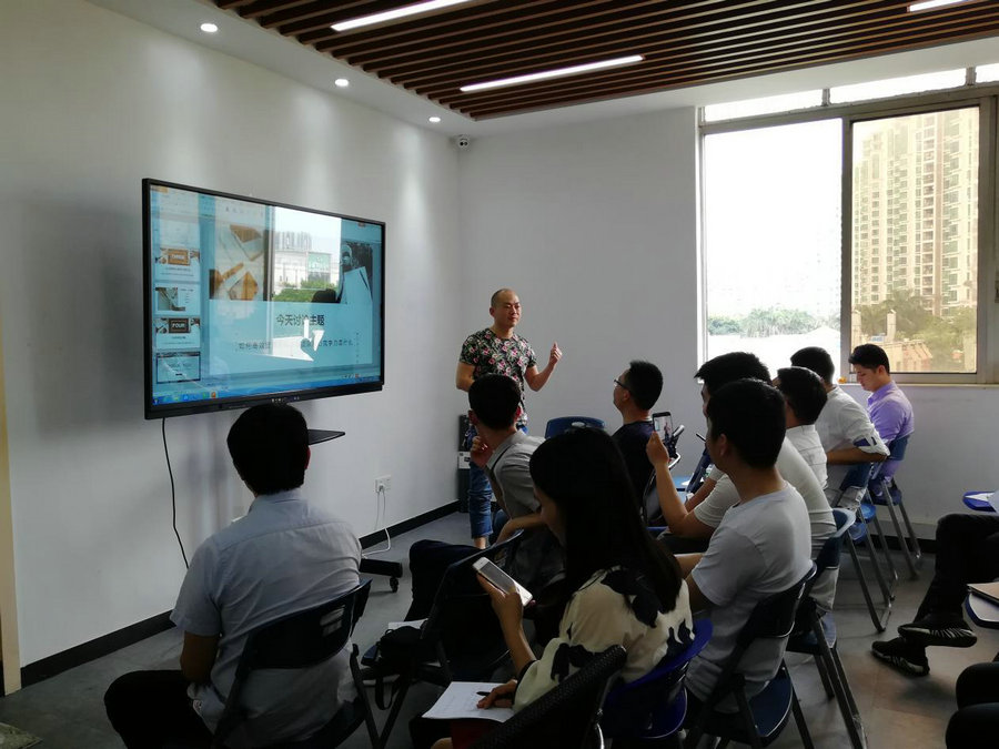 细致的参观过后便开始东道主分享环节,此次由铂典电商负责人曾伟德小哥哥为大家带来“公司组织架构”的主题分享。后来与伟德交谈中得知,他为了能够让今天来的兄弟们能够有收获,活动前一晚还召集自己很多电商朋友一起听他准备的主题分享,并把朋友们给予的建议进行分析并做PPT的修改。